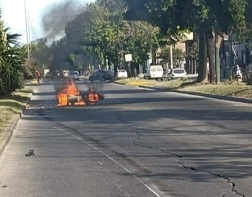 Longchamps: perdió el control de su moto, se cayó y se le prendió fuego
