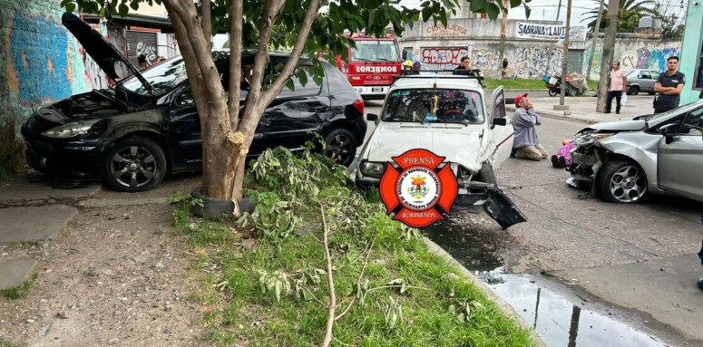 Tres vehículos protagonizaron este domingo un impresionante choque en el cruce de las calles Salta y Sánchez. El hecho dejó varios heridos pero no trascendió la gravedad de las lesiones.
