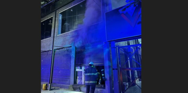 Los bomberos debieron romper la persiana del lugar para poder acceder al local y lograr extinguir las llamas.