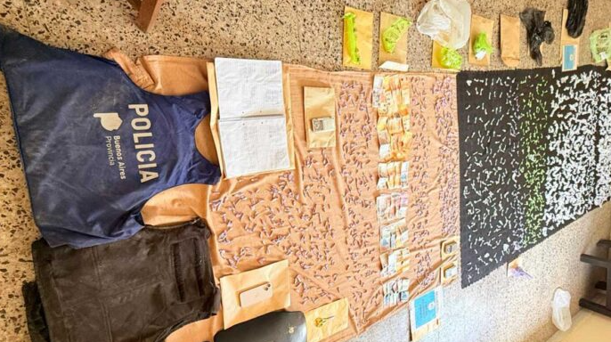 Los efectivos secuestraron 1.770 dosis de cocaína, 457 de marihuana, tres balanzas de precisión, elementos de corte, un teléfono y un cuaderno con anotaciones sobre venta de estupefacientes.