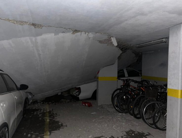 La edificación cuenta con tres pisos, donde se desplomó el techo del estacionamiento en el subsuelo. El siniestro ocurrió en la Avenida Suárez y Mafalda.